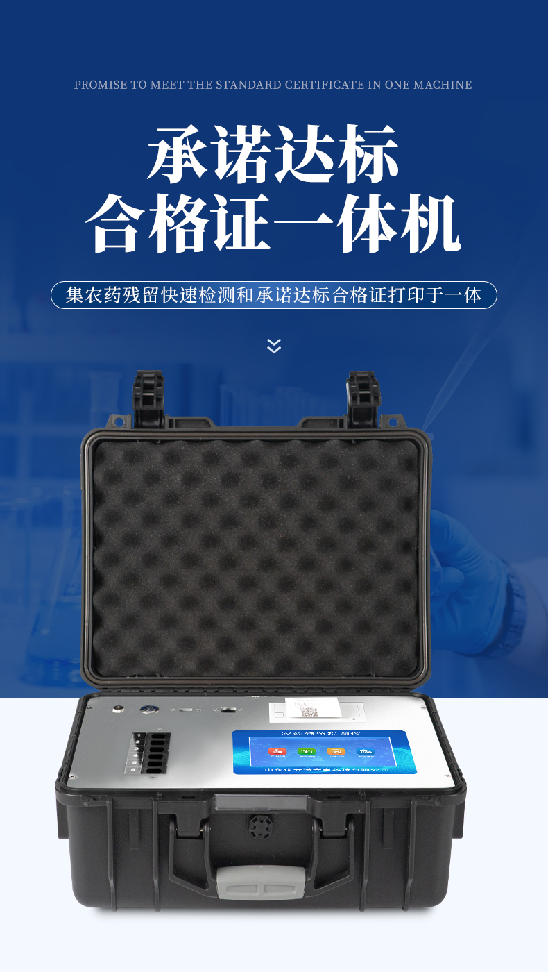 山東優(yōu)云譜光電科技有限公司是一家專業(yè)生產(chǎn)食品快檢儀器的高新技術(shù)領(lǐng)域企業(yè)。我公司根據(jù)農(nóng)村農(nóng)業(yè)部辦公廳關(guān)于《加快推進承諾達標合格證制度試行工作的通知》,在原有的食用農(nóng)產(chǎn)品合格證檢測打印一體機的基礎(chǔ)上優(yōu)化了打印標簽,使打印標頭和打印內(nèi)容符合承諾達標合格證的最新要求。該儀器集農(nóng)藥殘留快速檢測和承諾達標合格證打印于一體,智能化程度高,在快速檢測的同時實現(xiàn)承諾達標合格證的打印。打印內(nèi)容包含:承諾聲明、承諾依據(jù)、農(nóng)產(chǎn)品名稱、數(shù)量(重量)、產(chǎn)地、生產(chǎn)者蓋章或簽名、聯(lián)系方式、開具日期等信息,合格證下方自動跟隨二維碼打印,掃描二維碼可實現(xiàn)自動追溯。實現(xiàn)農(nóng)產(chǎn)品安全的全程數(shù)據(jù)溯源,適合各地檢測機構(gòu)、農(nóng)業(yè)合作社、蔬菜批發(fā)市場等單位使用。