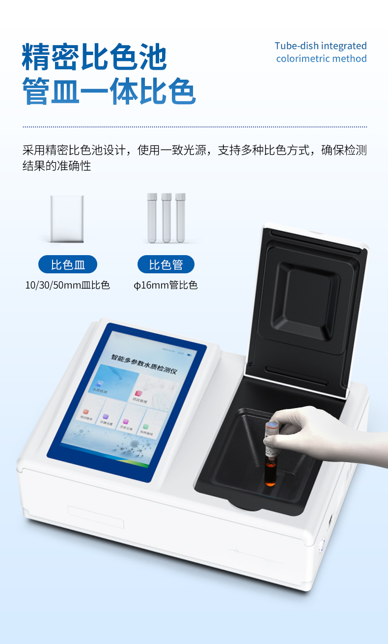 3、采用精密比色池設計,使用光源一致,可以解決由于光源誤差帶來的檢測結(jié)果誤差問題,檢測結(jié)果更加精準。