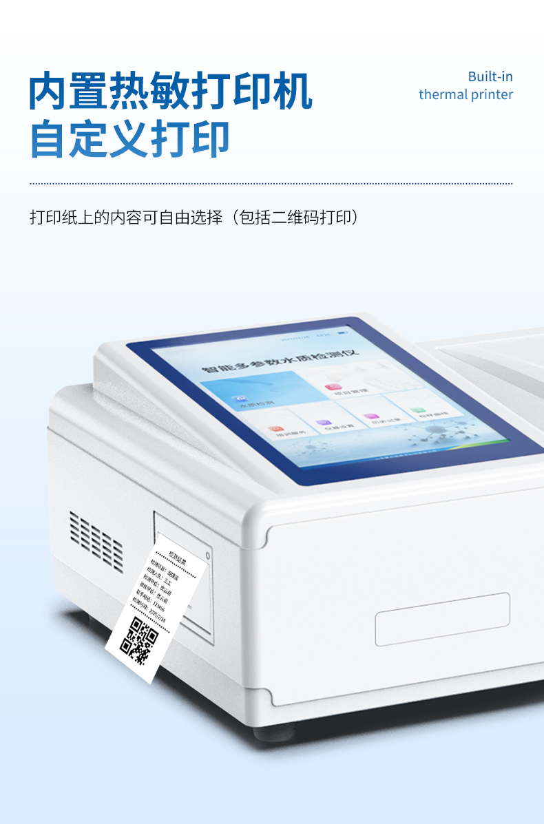 11、內(nèi)置熱敏行式打印機,打印紙上的內(nèi)容可自由選擇(包括二維碼打印);
