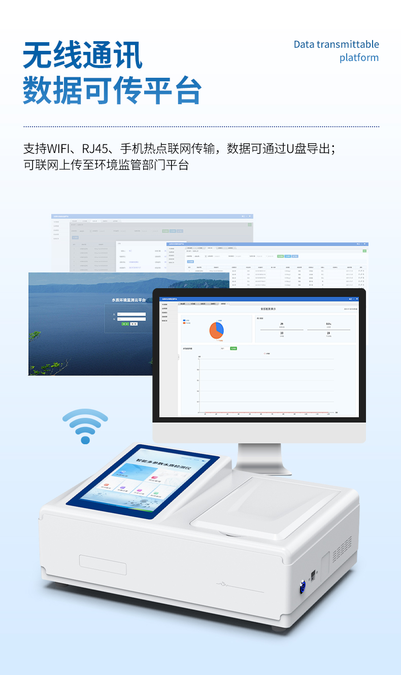 6、具有無線通訊功能,支持WIFI、RJ45、手機熱點聯(lián)網(wǎng)傳輸,檢測數(shù)據(jù)亦可通過U盤導出;