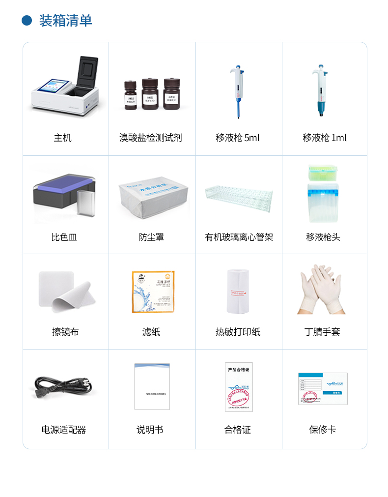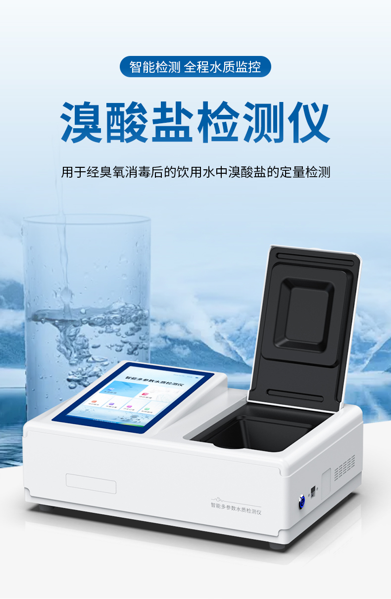 水質(zhì)溴酸鹽快速檢測儀是一款檢測快速檢測水體中溴酸鹽含量的儀器,適用于經(jīng)臭氧消毒后的礦泉水、凈化水、純凈水和各種包裝飲用水中溴酸鹽的定量檢測。