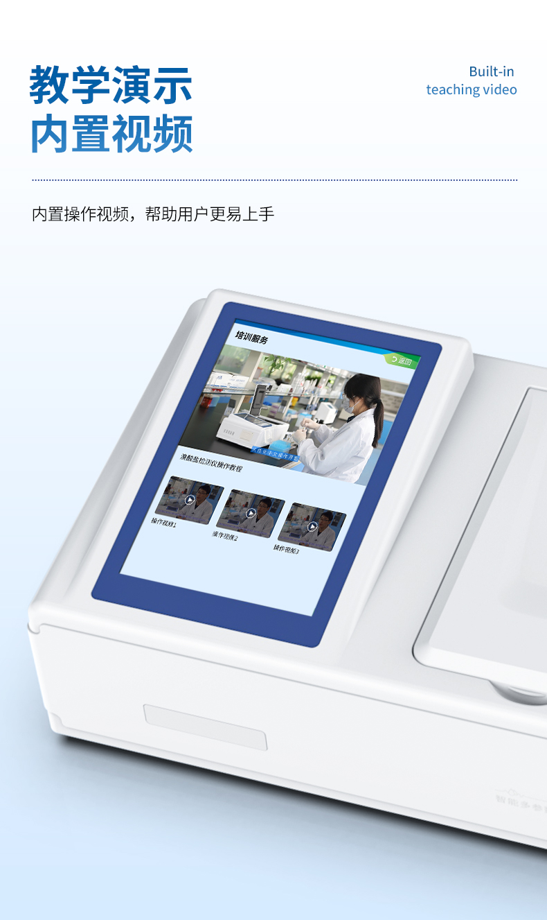 13、內(nèi)置教學演示視頻,用戶可一邊看儀器內(nèi)操作視頻,一邊進行實驗操作,更易上手。