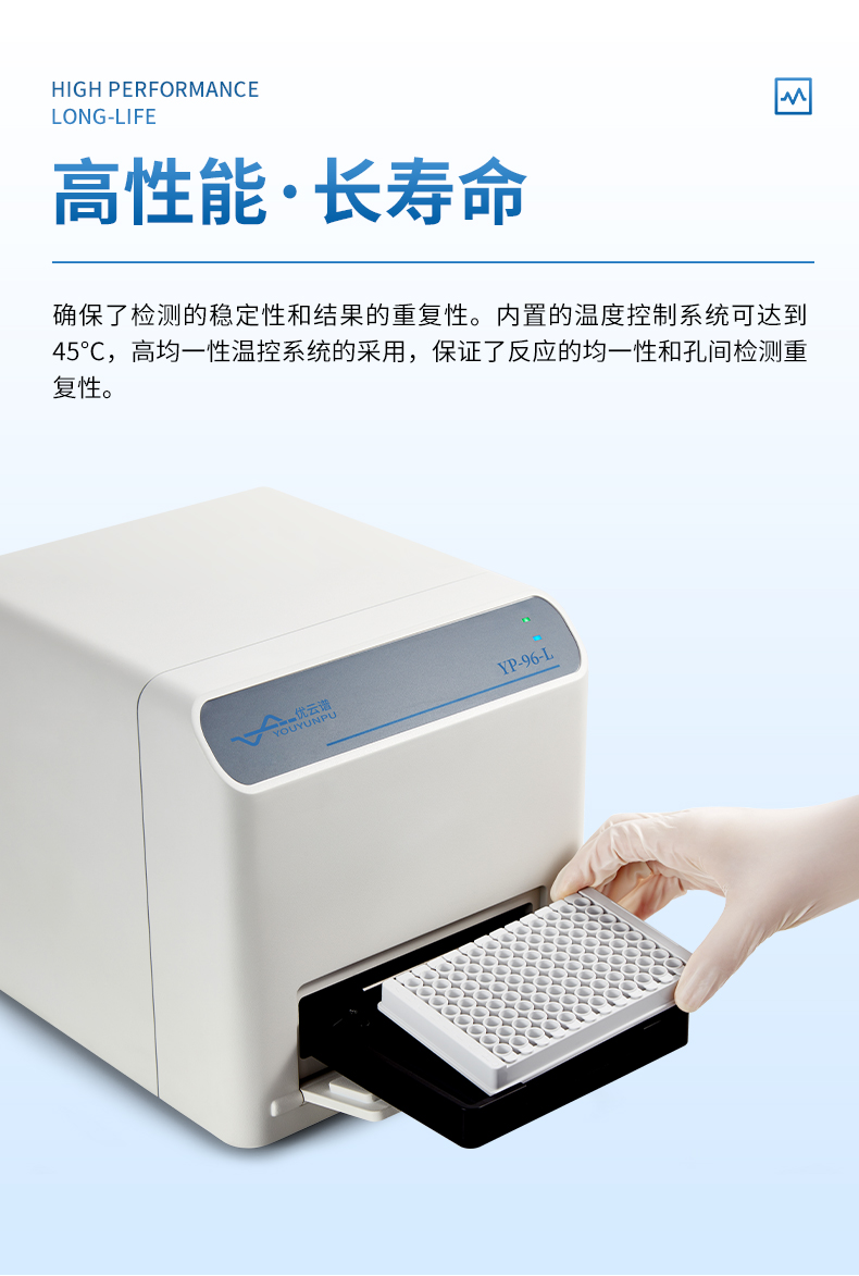 | 高性能,長壽命單色LED及激光LED的應(yīng)用,確保了檢測的穩(wěn)定性和結(jié)果的重復(fù)性。內(nèi)置的溫度控制系統(tǒng)可達(dá)到45°C,高均一性溫控系統(tǒng)的采用,保證了反應(yīng)的均一性和孔間檢測重復(fù)性 | ![]() |