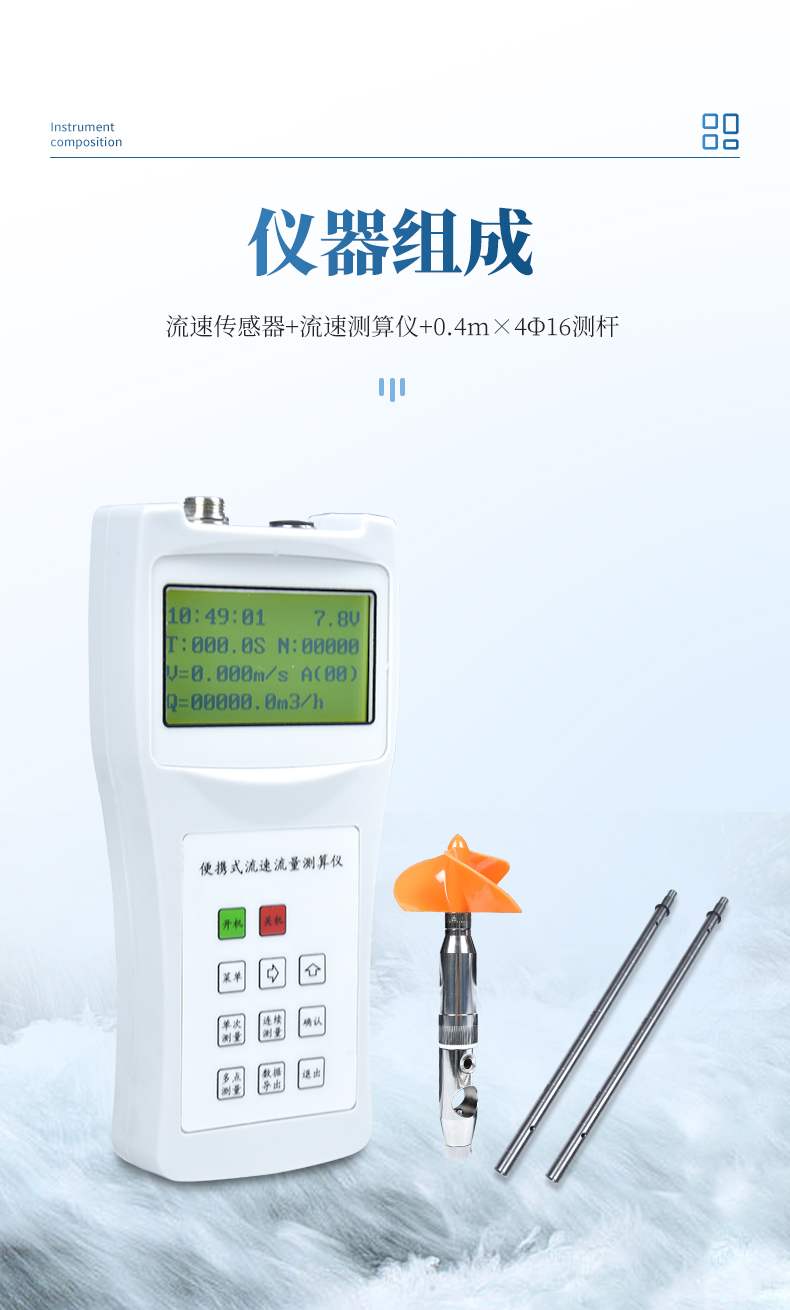 流速流量測算儀(簡稱便攜式流速儀)是一種在水文測驗中進行流速測量的通用型儀器,用于江河、湖泊、水庫、水渠等過水斷面中預定測點的時段平均流速的測量。