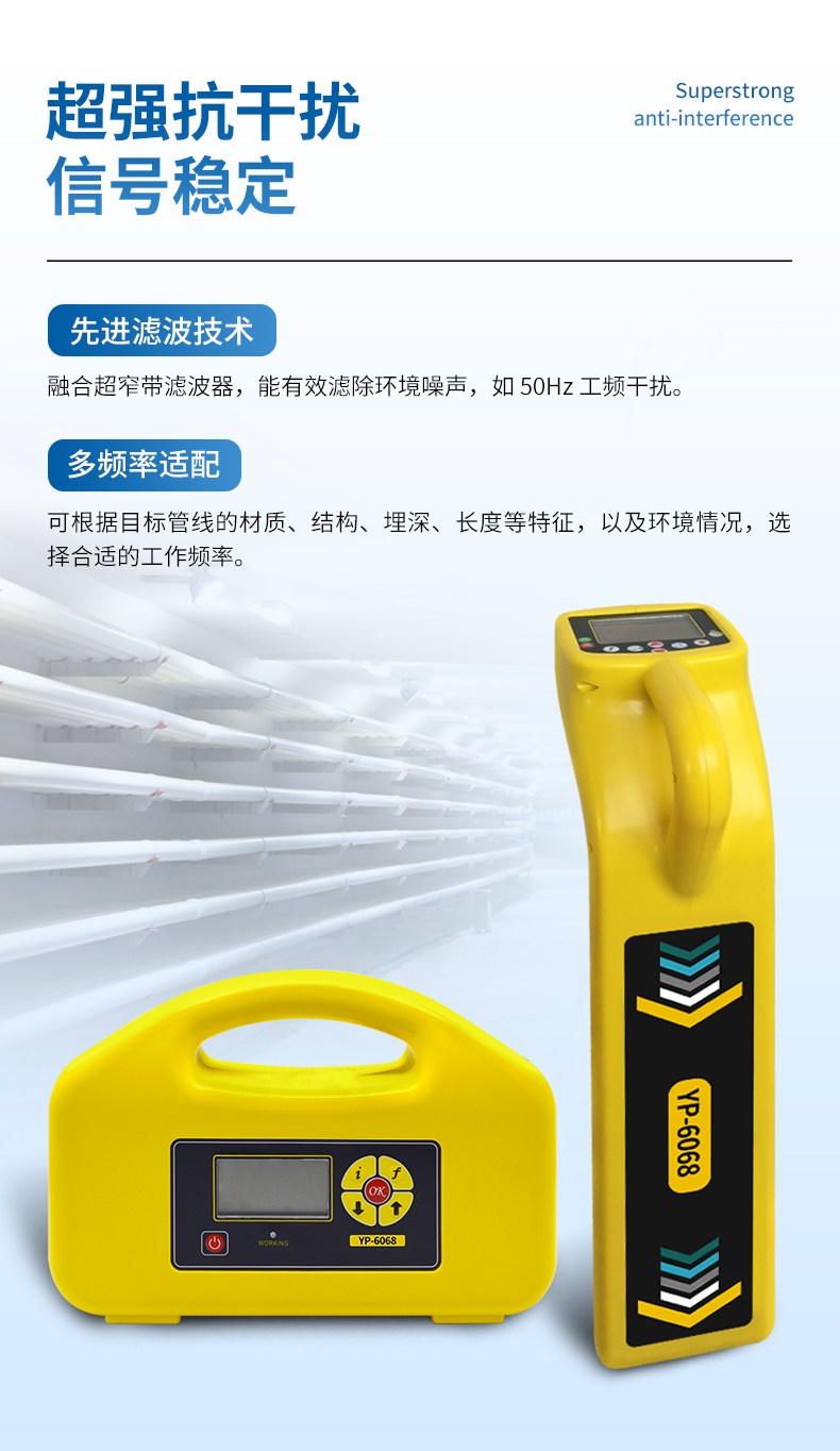 根據(jù)目標(biāo)管線特征(材質(zhì)、結(jié)構(gòu)、埋深、長度等)、環(huán)境選擇合適的工作頻率。