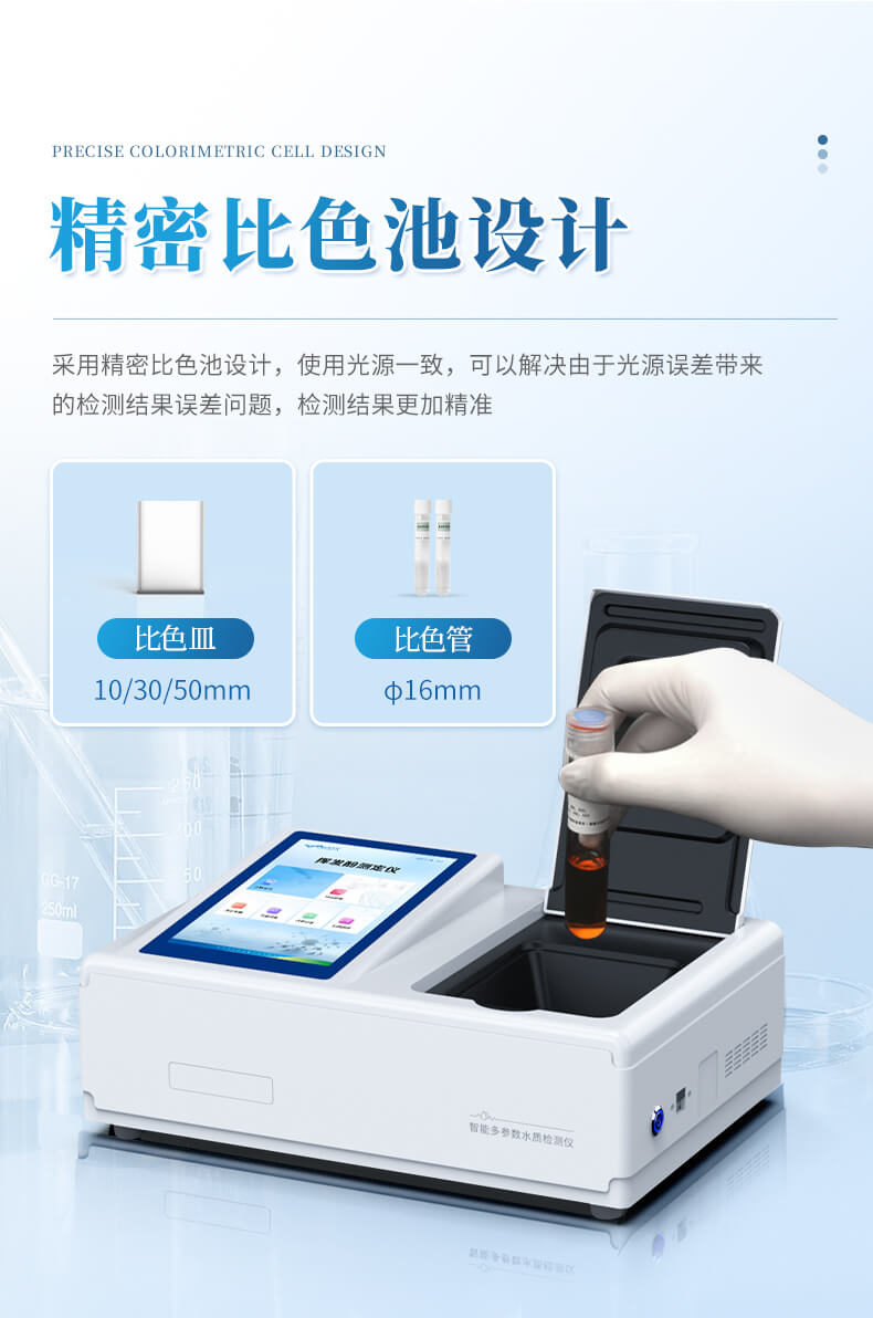 3、采用精密比色池設(shè)計(jì),使用光源一致,可以解決由于光源誤差帶來的檢測結(jié)果誤差問題,檢測結(jié)果更加精準(zhǔn)。