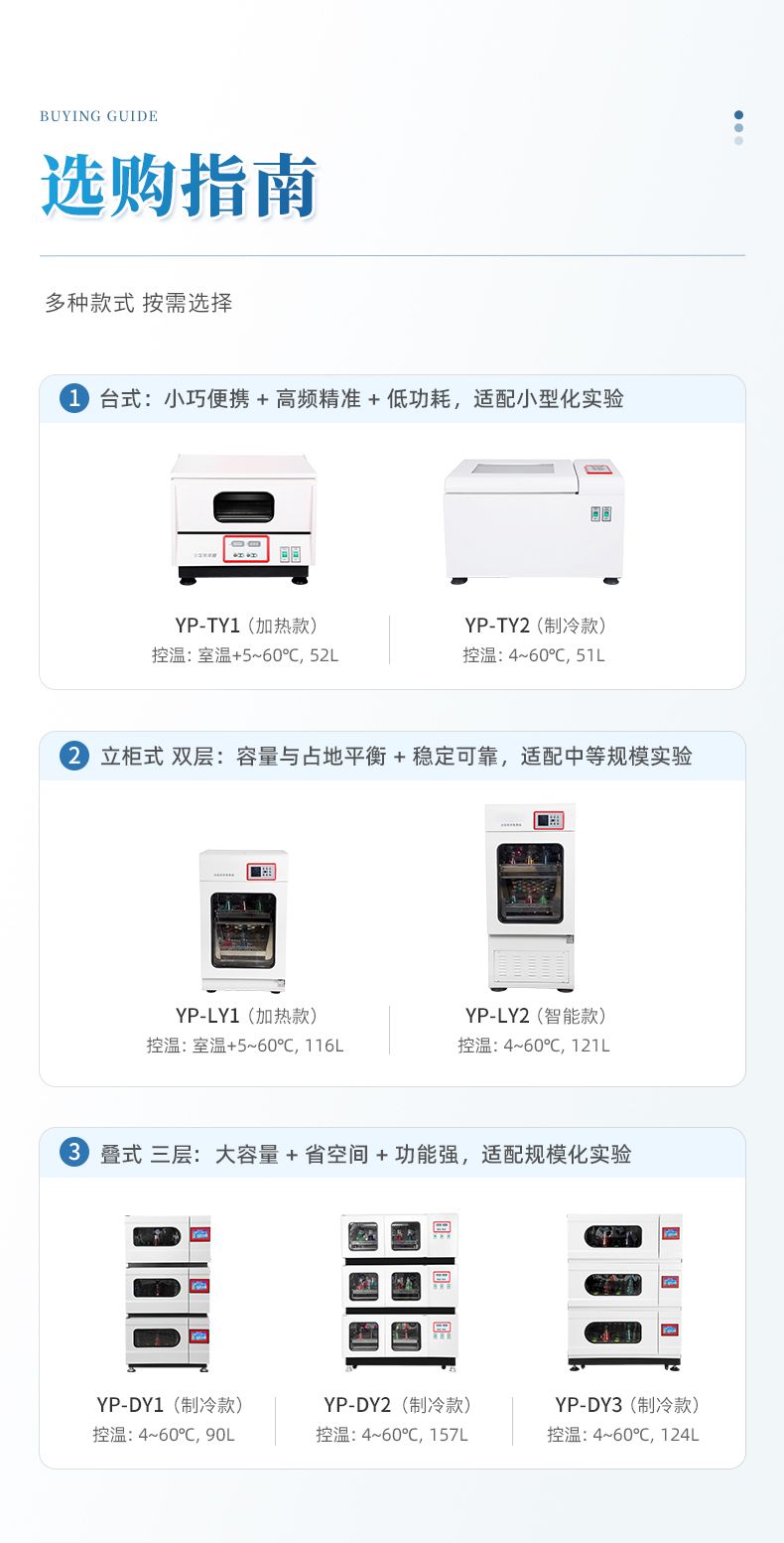 臺式恒溫小型振蕩器專為需求用地面積小的用戶設(shè)計。具有小外形體積,大工作空間的特性。可以放置在堅固的臺面或地面。該型搖床裝備PID控溫系統(tǒng)和無刷直流電機控制系統(tǒng),可滿足對溫度和速度有較高要求的用戶需求。