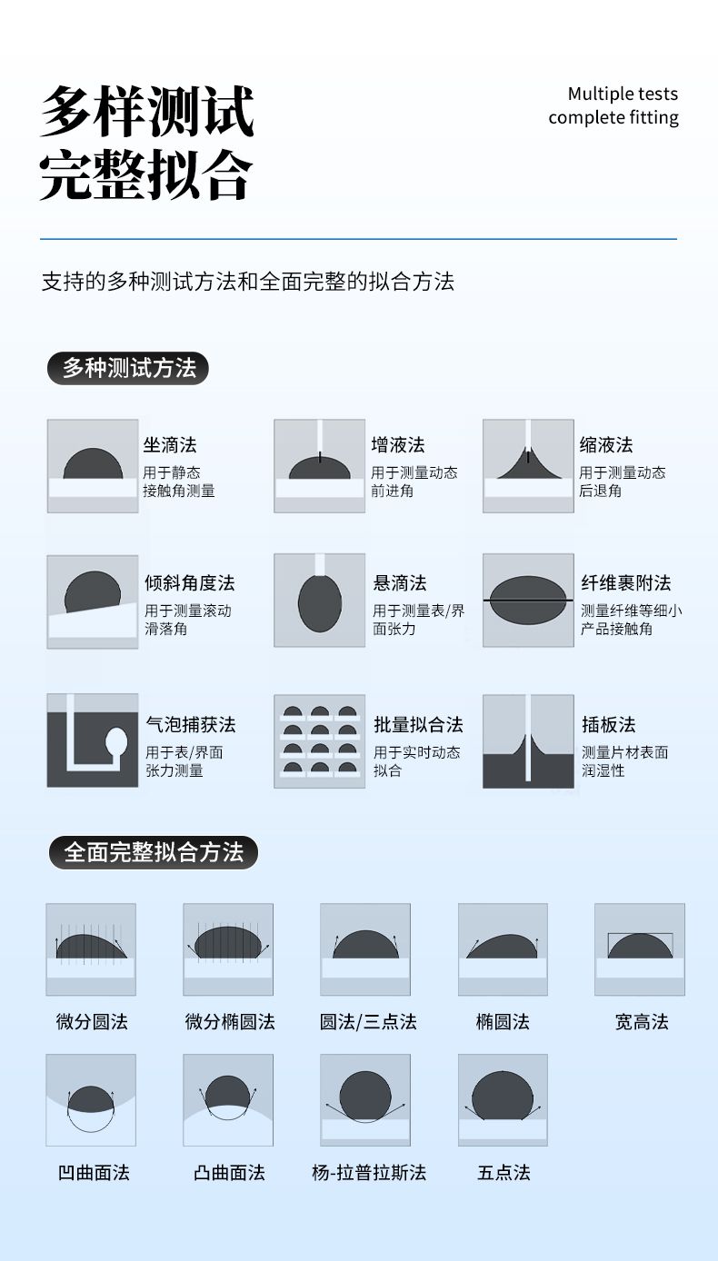 2.多功能分析模塊與算法,多模式測(cè)量方法;表面能與潤(rùn)濕性分析。
