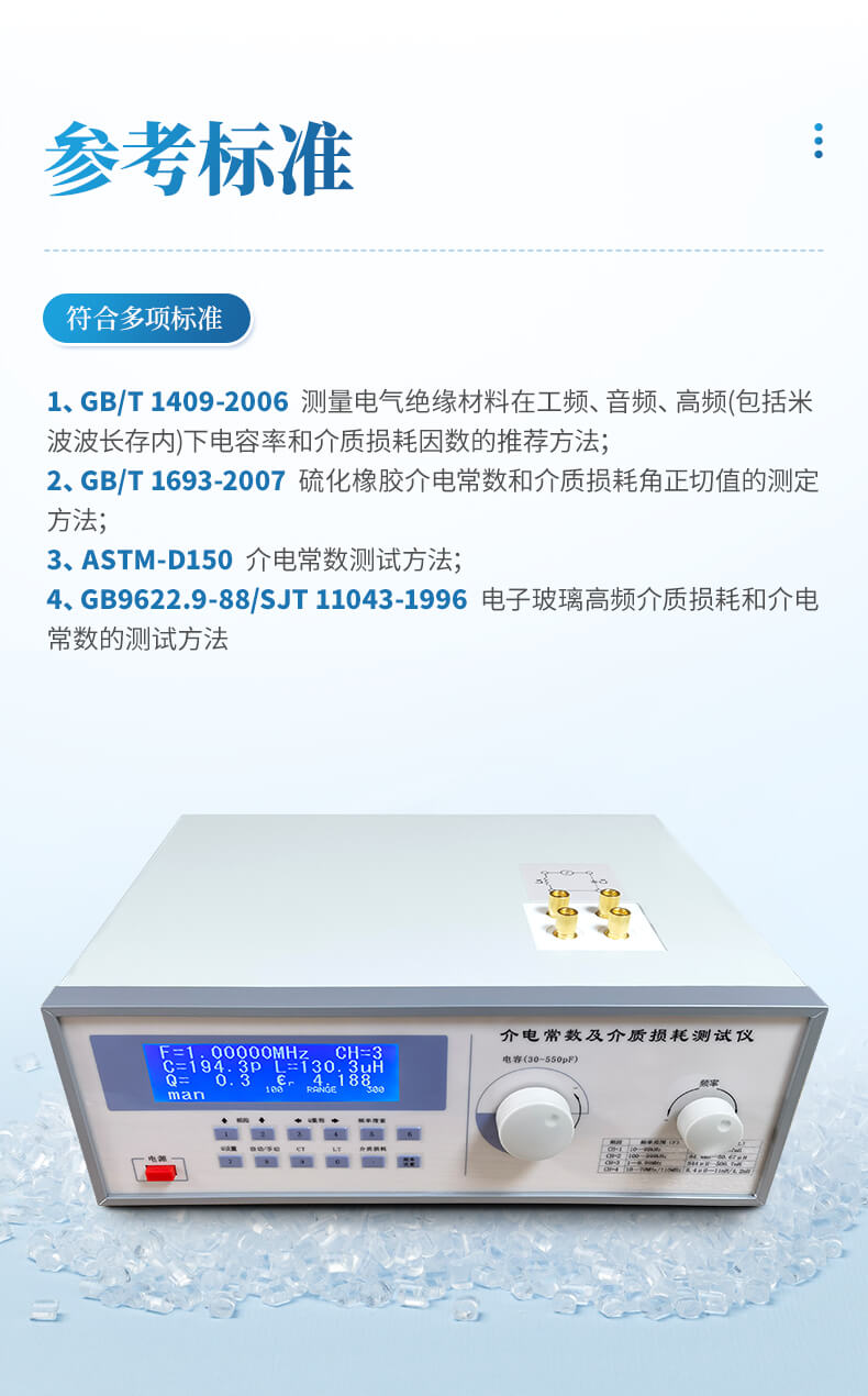 u GB/T 1409-2006 測(cè)量電氣絕緣材料在工頻、音頻、高頻(包括米波波長(zhǎng)存內(nèi))下電容率和介質(zhì)損耗因數(shù)的推薦方法;