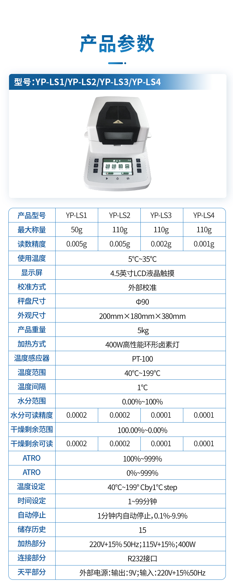 | 水分可讀精度 | 0.02% | 0.01% |