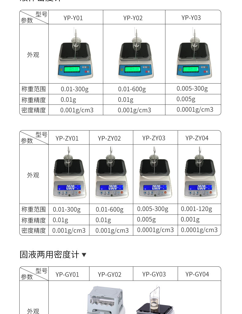 YP-ZG01 | 0.01-300g | 0.01g | 0.001g/cm3 |