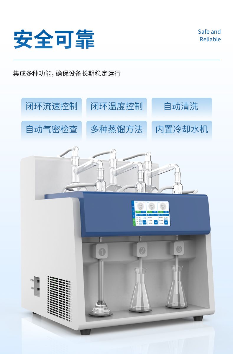 智能一體化蒸餾儀采用智能模塊化設(shè)計(jì):方法自定義設(shè)置保存/讀取、開機(jī)自動(dòng)調(diào)取使用,冷凝單元特殊定制蛇形冷凝管、智能終點(diǎn)控制防過量蒸餾、防倒吸保護(hù),防干燒保護(hù)、實(shí)現(xiàn)了智能操作簡(jiǎn)單、自動(dòng)蒸餾、美觀實(shí)用、節(jié)能降耗、節(jié)省人工的同時(shí)為用戶做樣提高效率節(jié)約人員成本開銷。