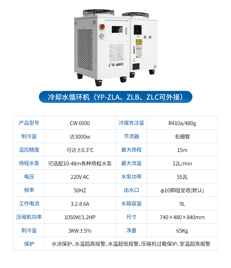 | 冷卻方式 | 內(nèi)置冷卻水機,閉環(huán)溫控,可控溫度5℃~25℃ | |