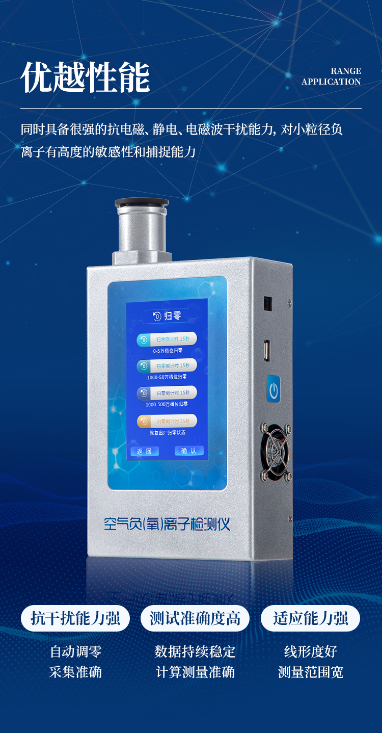 實時測量空氣中的大氣負氧離子濃度、甲醛濃度,是環(huán)境監(jiān)測、納米涂料、負離子保健產(chǎn)品、負離子家裝建材、室內(nèi)檢測、空氣治理、空氣凈化器及其制品負離子濃度的測量與演示的優(yōu)選工具。