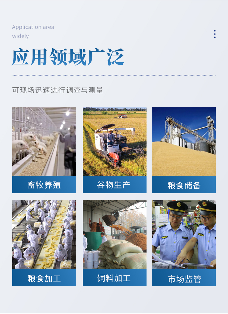 YP-L03型真菌毒素快速檢測(cè)儀采用熒光定量快速檢測(cè)原理,主要檢測(cè)糧油谷物飼料中真菌毒素含量,包括黃曲霉毒素、玉米赤霉烯酮、嘔吐毒素、伏馬毒素、赭曲霉毒素、T-2毒素等等,檢測(cè)樣品涵蓋糧食谷物(大米、玉米、小麥、大麥、高粱等)及其制品、飼料及其原料、食用油脂、牛奶及其制品等;樣品前處理簡(jiǎn)單,整個(gè)檢測(cè)過(guò)程檢測(cè)12min,產(chǎn)品適用于地方糧庫(kù)、谷物生產(chǎn)企業(yè)、飼料廠、各類畜牧養(yǎng)殖企業(yè)、面粉廠、食品加工廠、第三方檢測(cè)機(jī)構(gòu)及各級(jí)政府監(jiān)管部門。