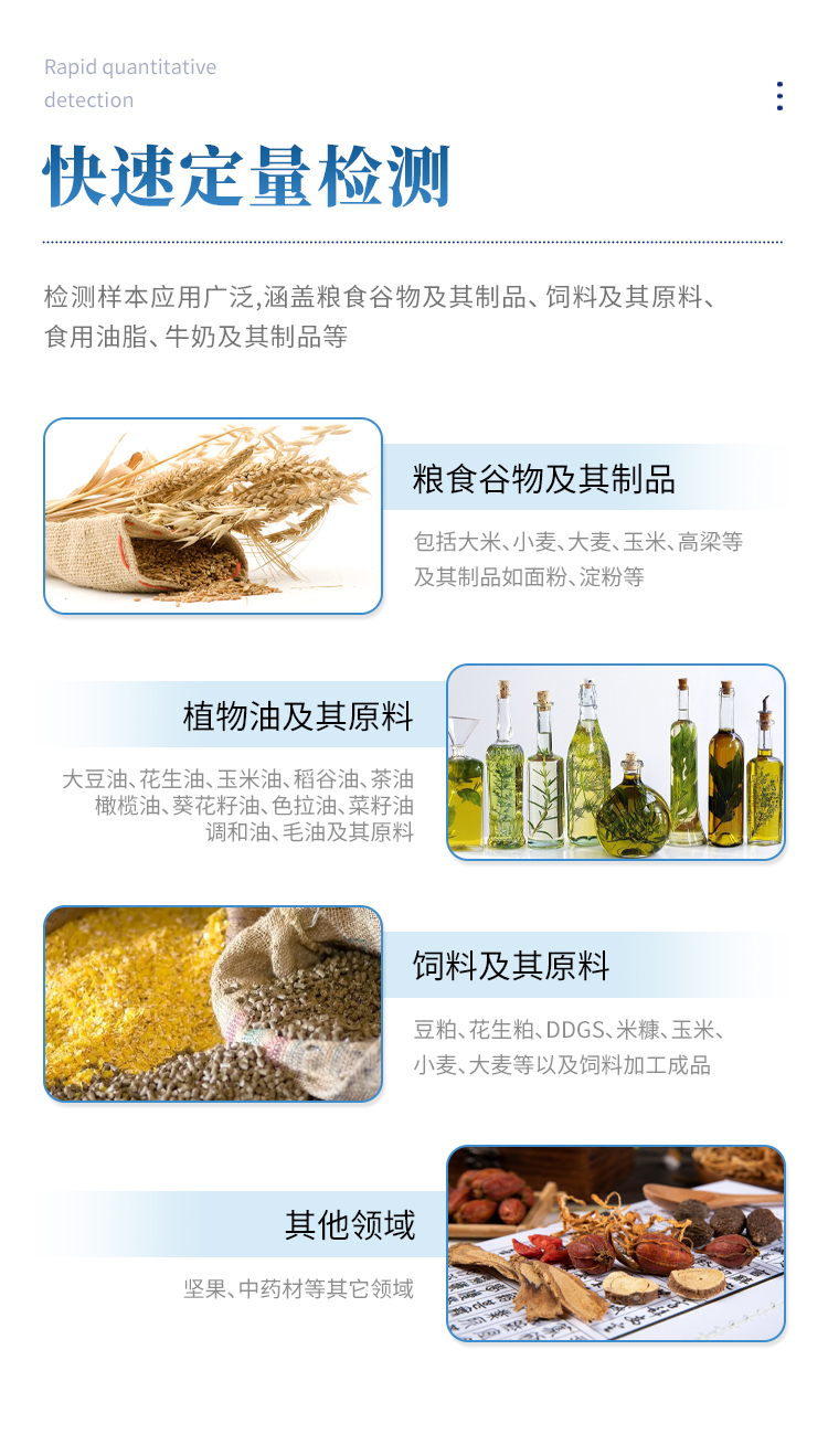 重金屬鎘 | 0-1000ug/kg | 玉米、小麥、麥麩、豆粕、花生粕、玉米胚芽粕、膨化玉米、DDGS、噴漿玉米皮及成品飼料 |
