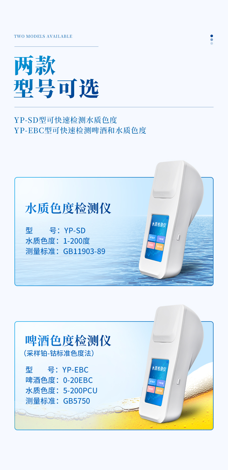 啤酒色度測(cè)定儀采用鉑-鈷標(biāo)準(zhǔn)色度法,用于測(cè)定溶解狀態(tài)的物質(zhì)所產(chǎn)生的顏色,儀器采用國(guó)家標(biāo)準(zhǔn)GB5750中所規(guī)定的鉑-鈷色度標(biāo)準(zhǔn)溶液進(jìn)行標(biāo)定,采用鉑-鈷色度作為計(jì)量單位。