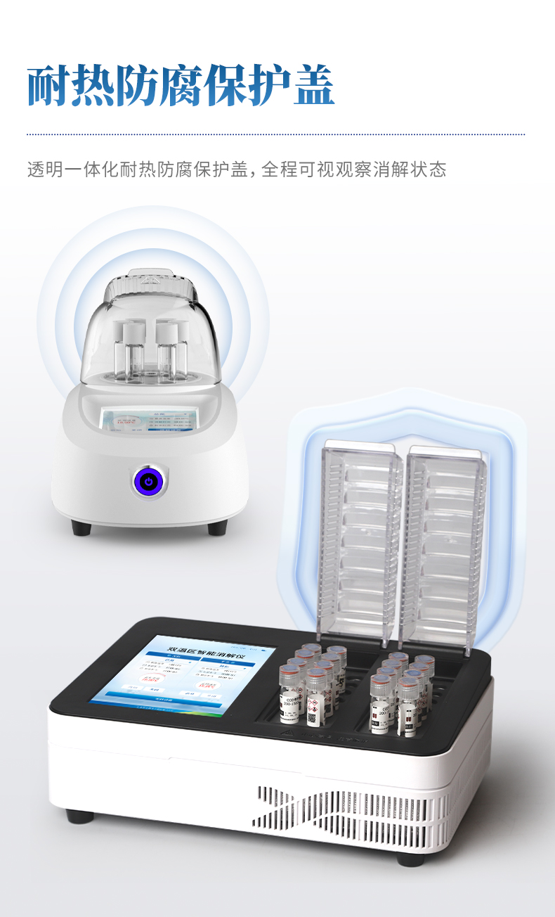 7、透明一體化耐熱防腐保護蓋,全程可視觀察消解狀態(tài);