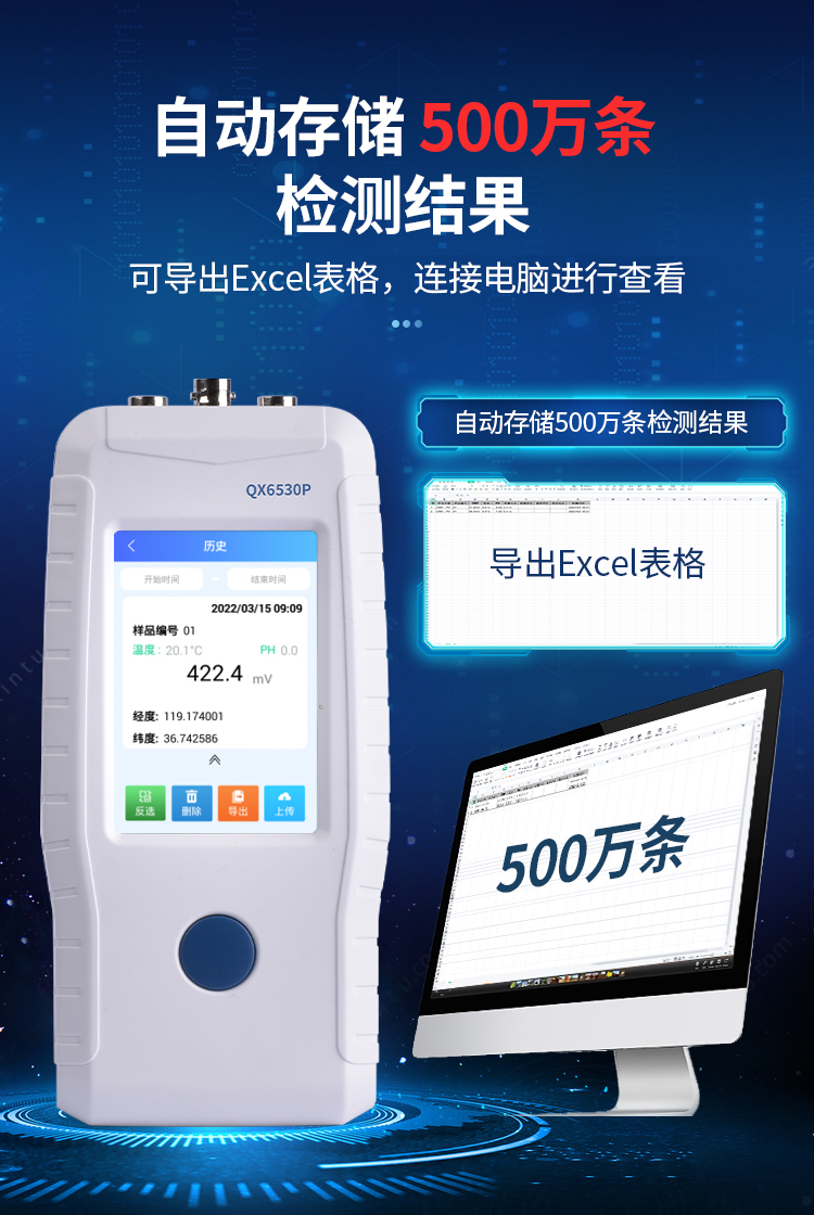 ●檢測(cè)結(jié)果存儲(chǔ)容量500萬(wàn)條,支持?jǐn)?shù)據(jù)存儲(chǔ)、查閱。