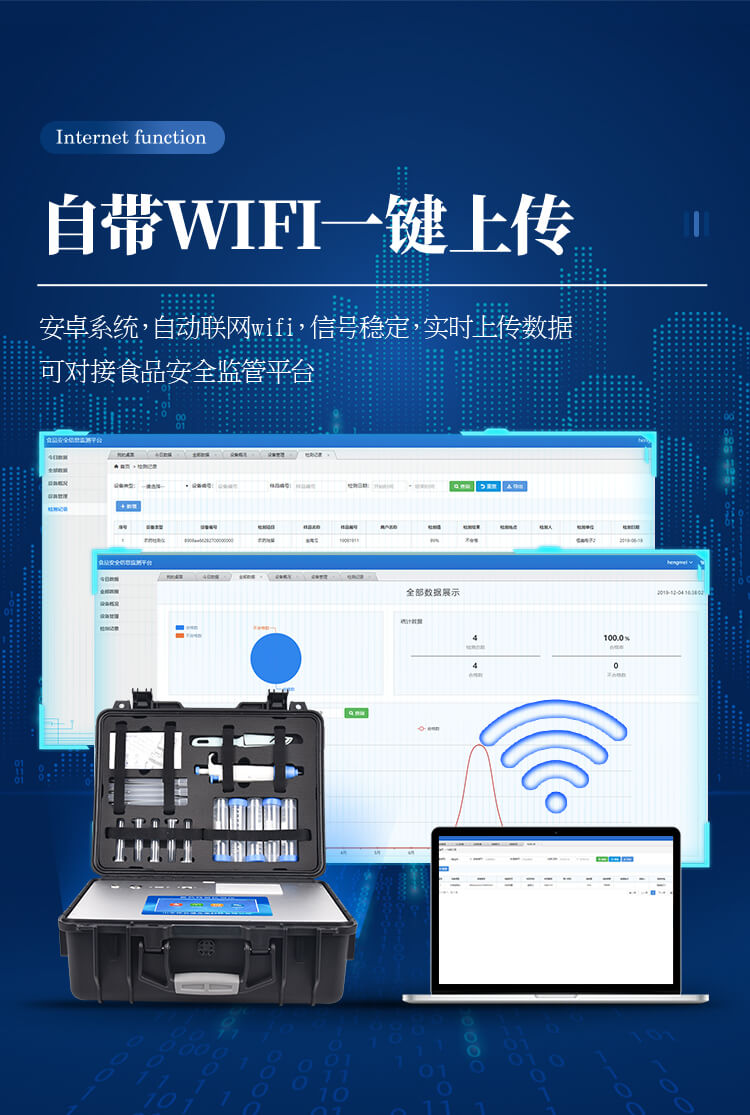 ★4、儀器帶有監(jiān)管平臺(tái),數(shù)據(jù)可局域網(wǎng)和互聯(lián)網(wǎng)數(shù)據(jù)上傳,檢測(cè)結(jié)果直接傳至食品安全監(jiān)管平臺(tái)。進(jìn)行區(qū)域食品安全監(jiān)管及大數(shù)據(jù)分析處理與數(shù)據(jù)統(tǒng)計(jì),檢測(cè)區(qū)域食品安全長(zhǎng)短期動(dòng)態(tài),達(dá)到食品安全問題預(yù)估、預(yù)警