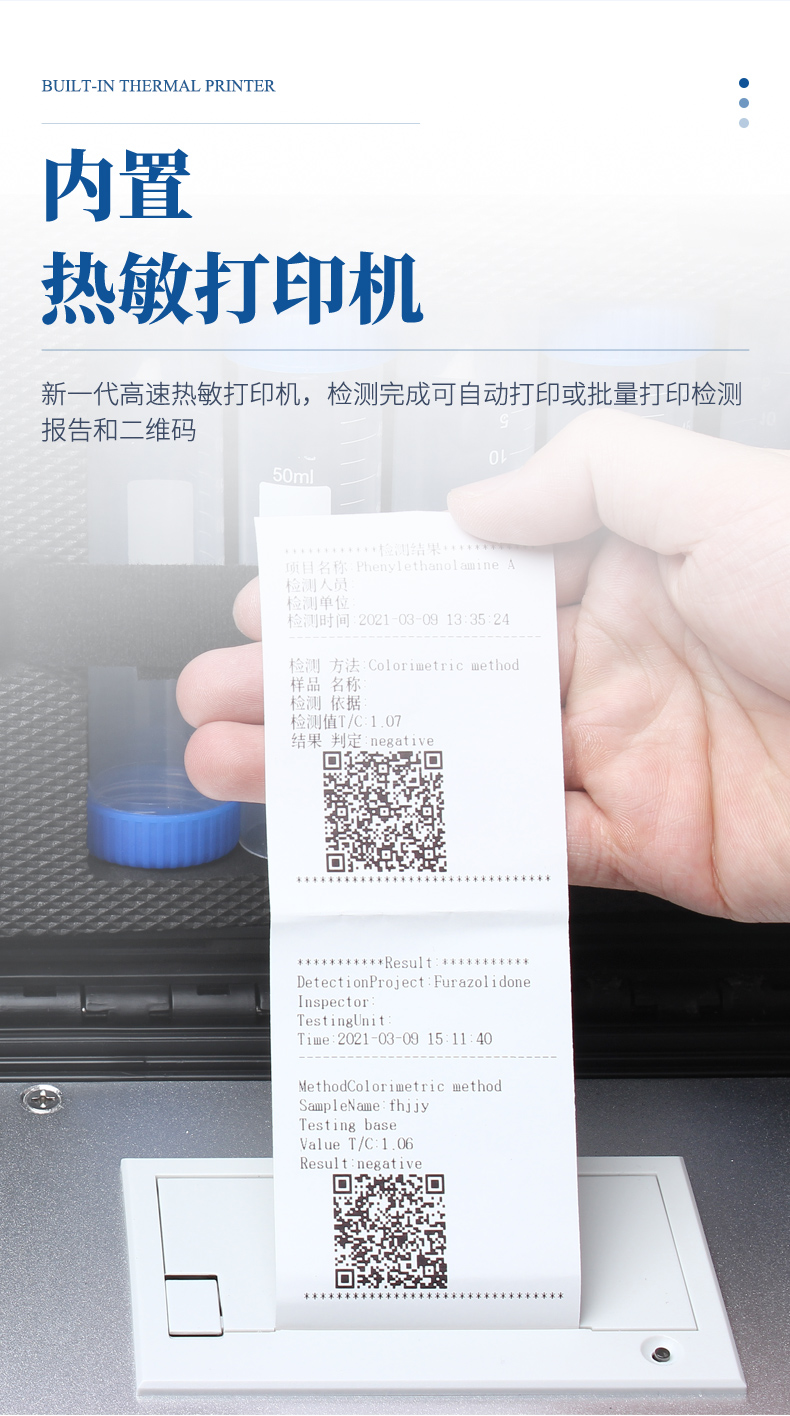 12、新一代高速熱敏打印機(jī),檢測(cè)完成可自動(dòng)打印或批量打印檢測(cè)報(bào)告和二維碼。