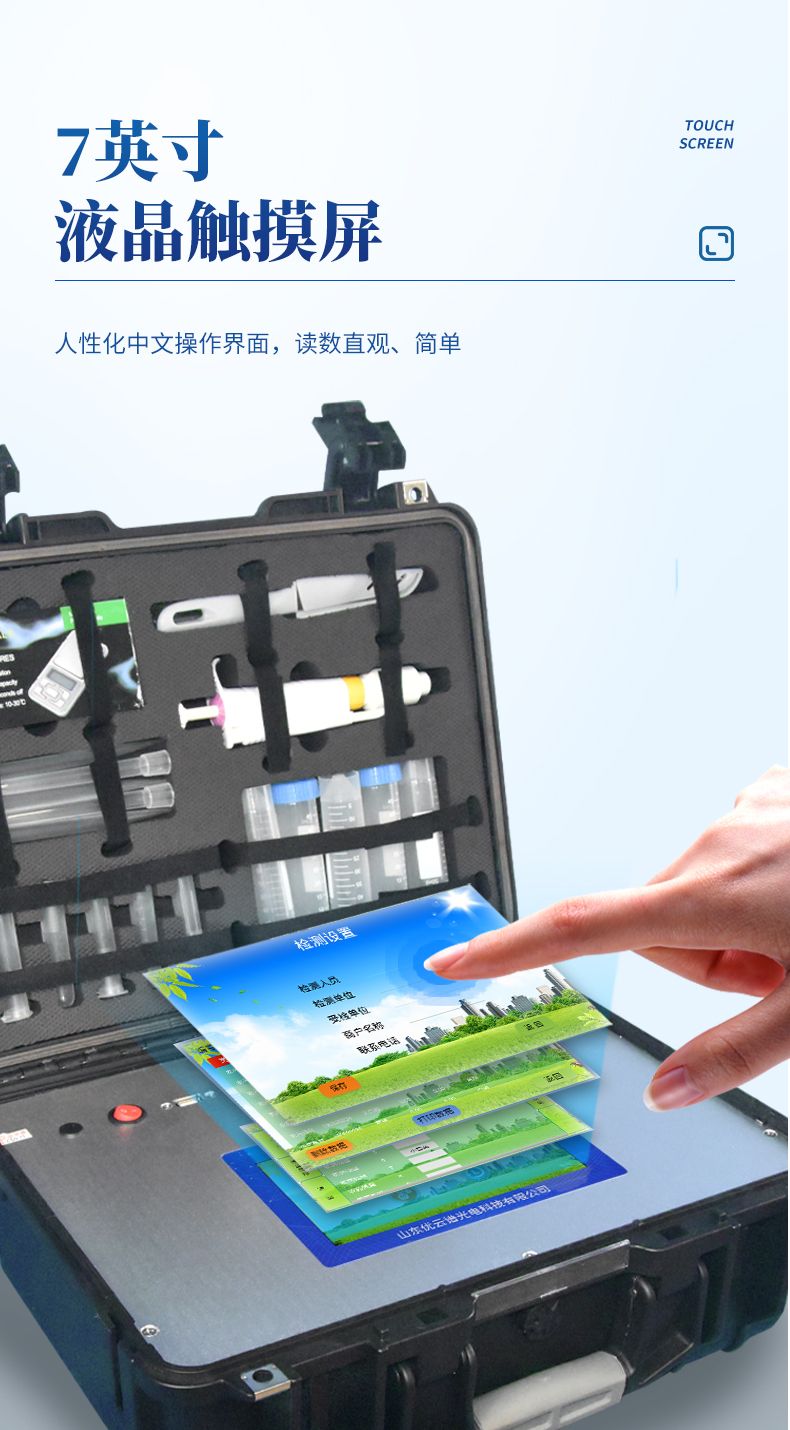 2、顯示方式:7英寸液晶觸摸屏顯示,人性化中文操作界面,讀數(shù)直觀、簡(jiǎn)單。