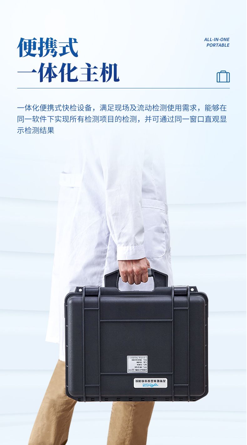 6、一體化便攜式快檢設(shè)備,滿足現(xiàn)場(chǎng)及流動(dòng)檢測(cè)使用需求,能夠在同一軟件下實(shí)現(xiàn)所有檢測(cè)項(xiàng)目的檢測(cè),并可通過(guò)同一窗口直觀顯示檢測(cè)結(jié)果。