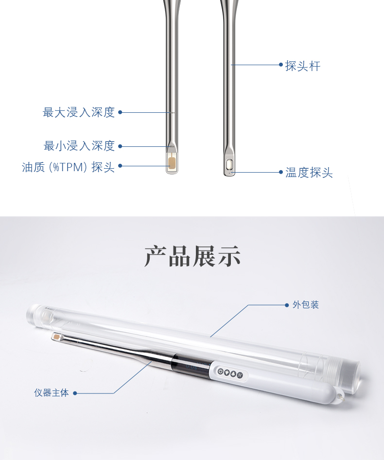 食用油脂是人們攝取能量和營(yíng)養(yǎng)的重要來源,是加工食品的重要原料。油炸食品以其特有風(fēng)味廣受消費(fèi)者喜歡。用于煎炸的食用油在高溫煎炸過程中發(fā)生一系列的物理、化學(xué)變化,這些變化會(huì)生成對(duì)身體健康有害的物質(zhì)。目前,煎炸食用油的傳統(tǒng)檢測(cè)方法多為化學(xué)方法,這些方法必須在實(shí)驗(yàn)室內(nèi)由專業(yè)人員操作,費(fèi)時(shí)費(fèi)力,化學(xué)試劑的使用可能會(huì)傷害檢測(cè)人員健康,且化學(xué)廢劑污染了環(huán)境。YP-SYP是一種快速,安全,高效食用油品質(zhì)檢測(cè)儀,能夠快速檢測(cè)食用油中的極性化合物組分(TPM)含量。本產(chǎn)品能夠在油溫較高的環(huán)境下使用,適用于各種煎炸的食用油品質(zhì)檢驗(yàn)。