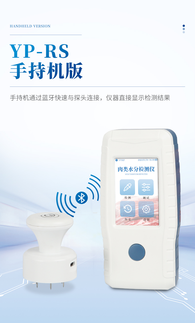 肉類含水量測定儀通過向樣品注入高頻電信號并接收回波測量生肉含水量,相比GB18394-2020國標文件中的5.2節(jié)紅外線干燥法(快速法)更快速便捷,具有不需要制備樣品,檢測迅速,操作方便的優(yōu)點。