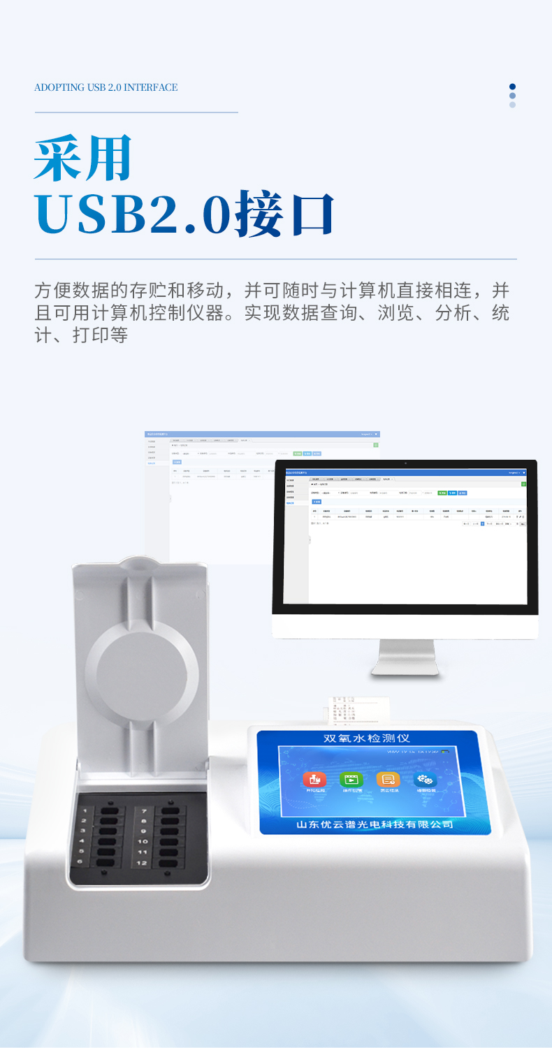 6、采用USB2.0接口設(shè)計(jì),方便數(shù)據(jù)的存貯和移動(dòng),并可隨時(shí)與計(jì)算機(jī)直接相連,并且可用計(jì)算機(jī)控制儀器。實(shí)現(xiàn)數(shù)據(jù)查詢、瀏覽、分析、統(tǒng)計(jì)、打印等。