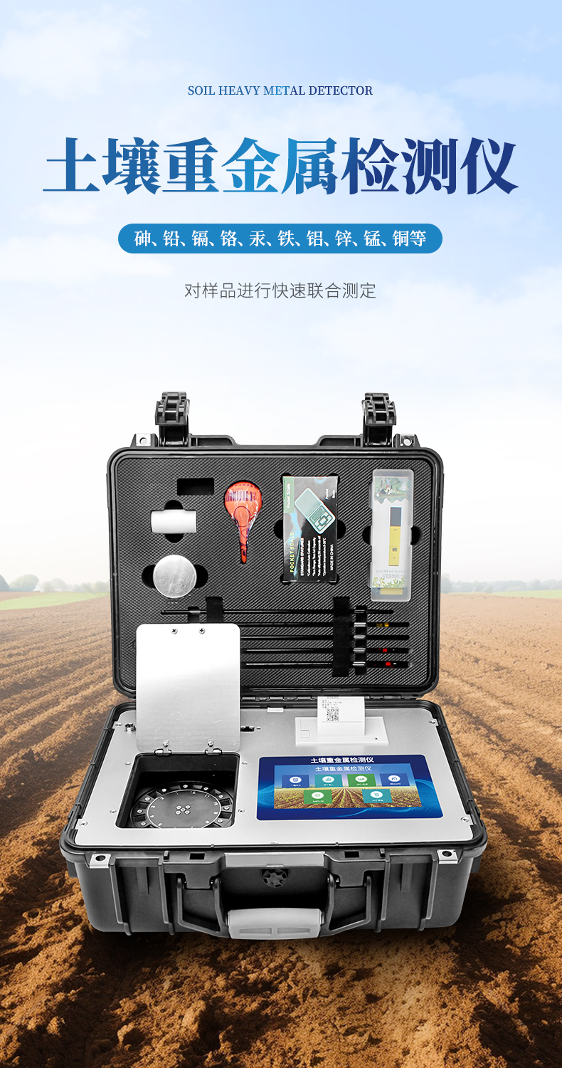 土壤重金屬污染問題日益嚴(yán)重,造成土壤耕作層內(nèi)的鎘、銅、砷、鉻、汞、鐵、鋅、錳、銅、鋁等重金屬大量富積、積累,成為當(dāng)下面臨的主要環(huán)境問題之一。土壤中的重金屬通過在作物體內(nèi)富集進(jìn)入食物鏈,對人畜健康造成嚴(yán)重威脅。有色金屬礦山的開采、 工業(yè)“三廢”的排放、含重金屬廢棄物堆積、農(nóng)業(yè)生產(chǎn)中的污水灌溉,農(nóng)用化學(xué)藥品的不合理使用等,都可能導(dǎo)致有害重金屬元素直接或間接進(jìn)入土壤,導(dǎo)致土壤、作物、果蔬、水質(zhì)、水產(chǎn)品等重金屬含量嚴(yán)重超標(biāo)。但是當(dāng)前重金屬測定方法測定速度慢、步驟繁瑣且儀器昂貴?;谶@種形勢,我們開發(fā)出了重金屬快速測定方法。