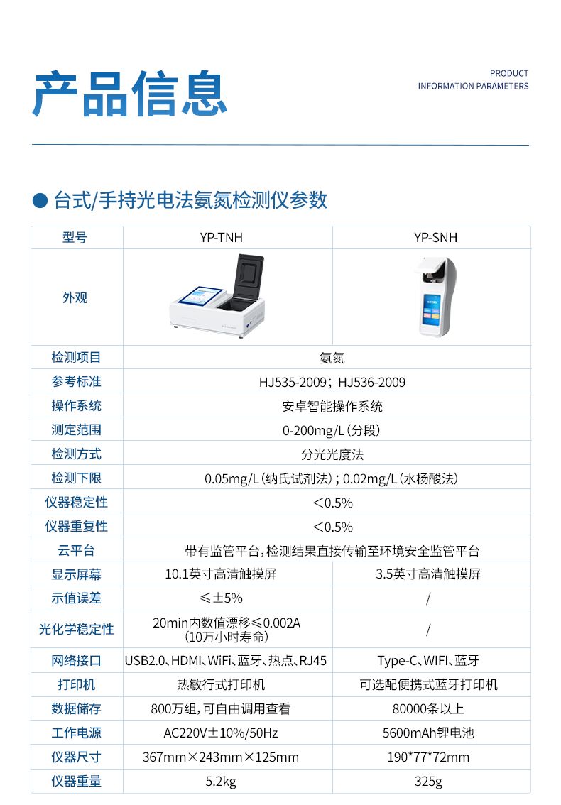 智能氨氮快速檢測儀主要檢測水體中的氨氮含量;設備內(nèi)置多個光源,對應不同的檢測波長,可同時滿足納氏試劑法和水楊酸法檢測水體中的氨氮含量。納氏試劑法參考環(huán)境標準HJ 535-2009 《水質(zhì) 氨氮的測定 納氏試劑分光光度法》,水楊酸法參考環(huán)境標準HJ 536-2009 《水質(zhì) 氨氮的測定 水楊酸分光光度法》。本儀器兼具智能數(shù)據(jù)分析功能,圖表、列表顯示數(shù)據(jù),分析一目了然;高清晰度彩色液晶觸摸顯示屏,Android智能操作系統(tǒng),中文顯示界面,中英文鍵盤,人性化操作,使用更簡單。