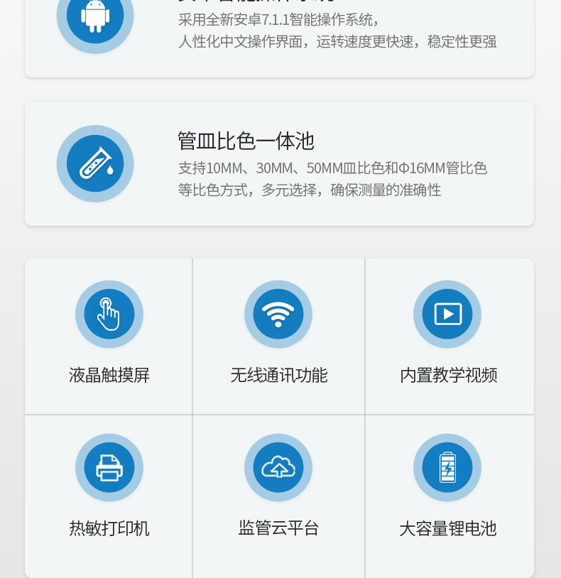 2、雙比色檢測系統(tǒng),同時支持預(yù)制試管比色和比色皿比色;