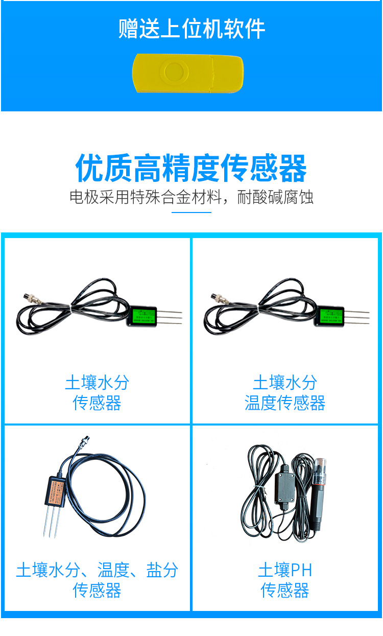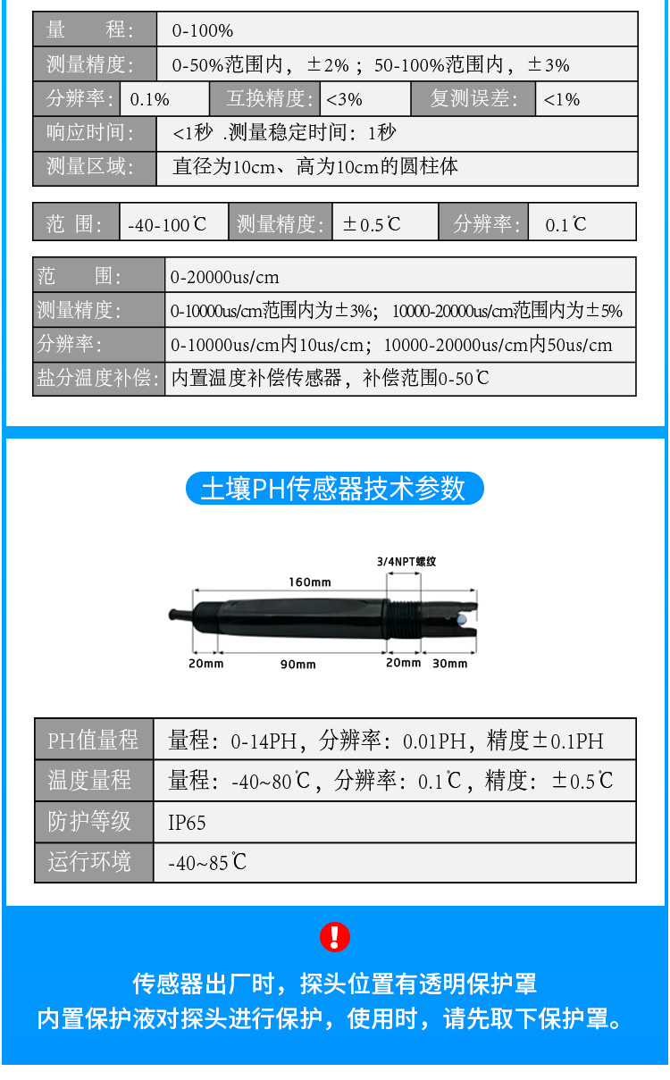 .水分溫度材料特性:不銹鋼(抗電解,可經(jīng)受長(zhǎng)期電解,可經(jīng)受土壤中的酸堿腐蝕)
