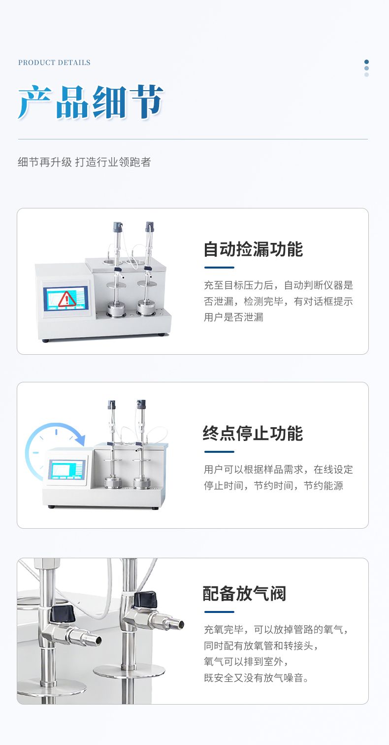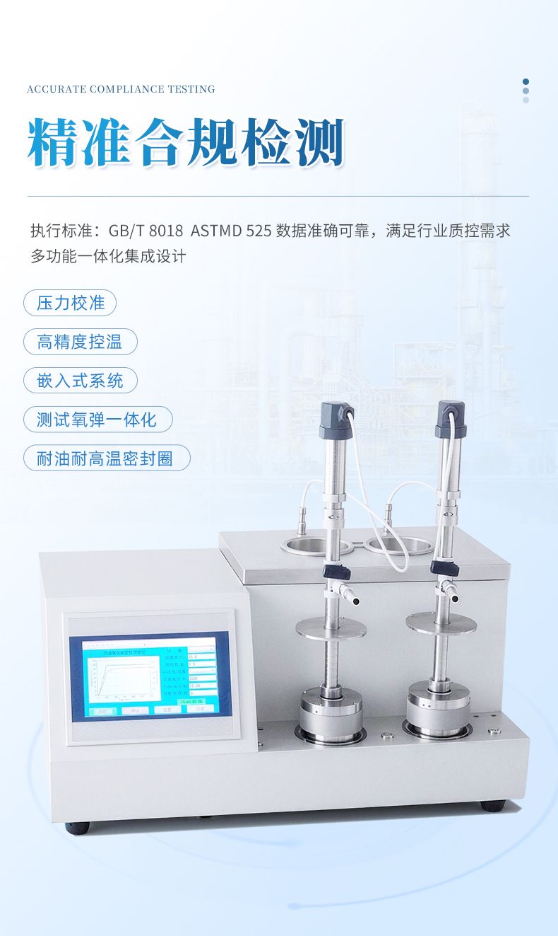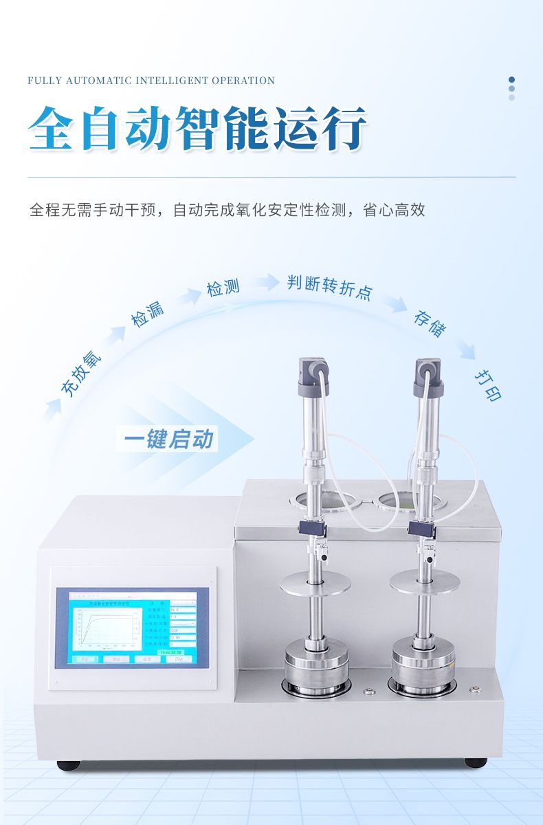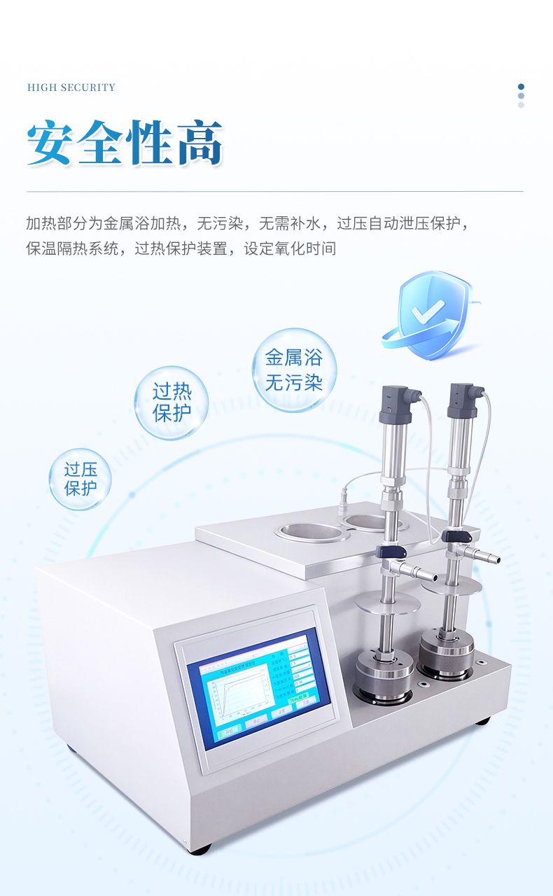 (5)儀器具有設(shè)定氧化時間功能,根據(jù)國家標(biāo)準(zhǔn)如果樣品出現(xiàn)緩慢氧化,到達(dá)設(shè)定時間后,儀器自動計算出該時間下的最高到最低壓力降,作為實驗數(shù)據(jù)。