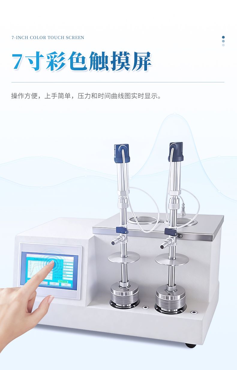 (1)儀器采用7寸彩色液晶觸摸屏,壓力和時間曲線圖實時顯示。
