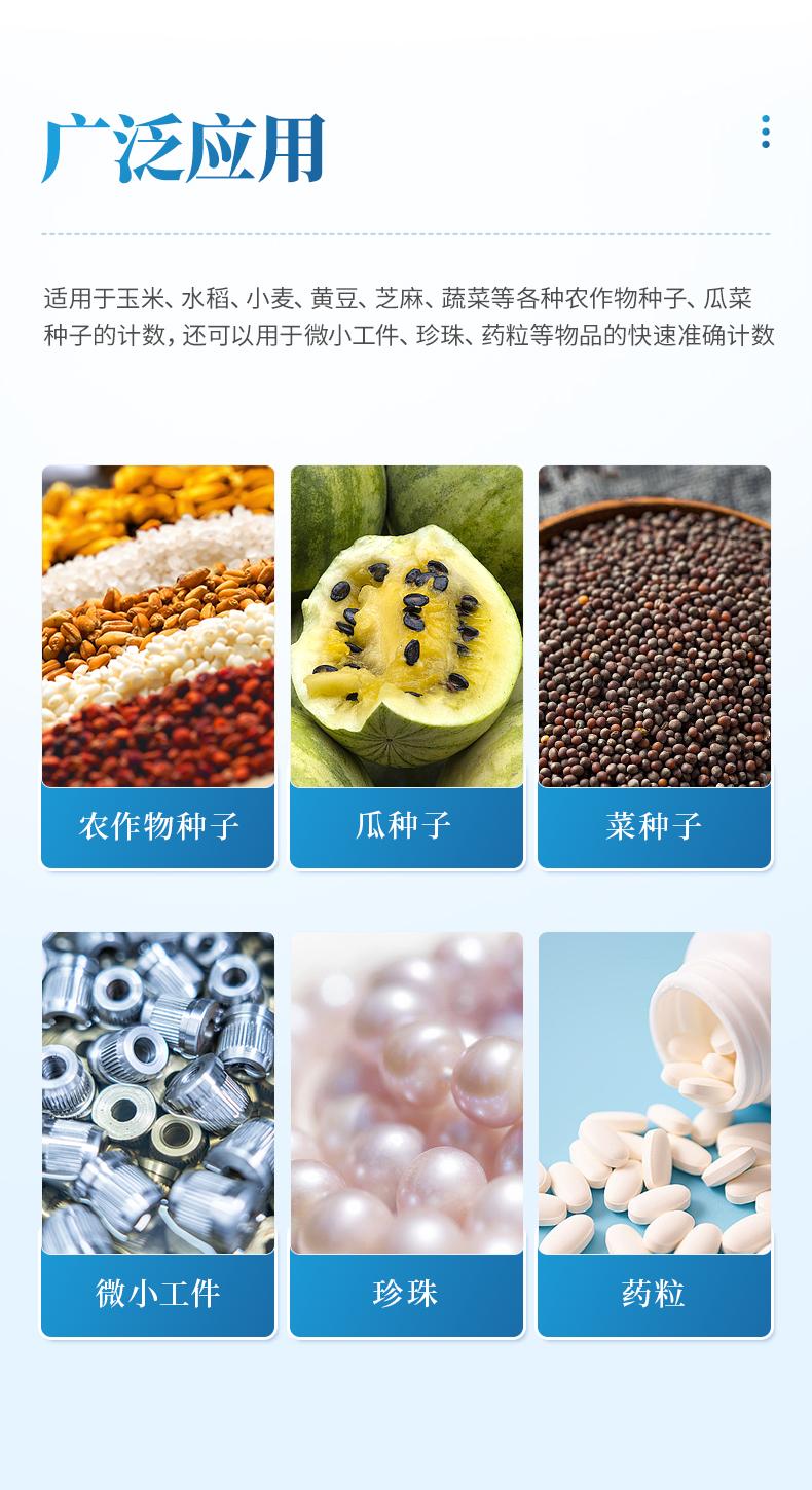 15、靈敏度可調(diào):可以調(diào)節(jié)靈敏度,適應(yīng)各種大小形狀的種子,提高精確度。