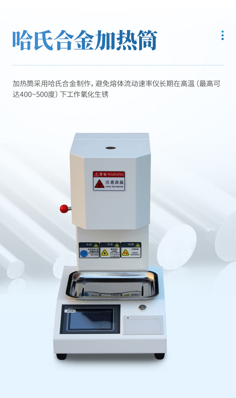 1、加熱筒采用哈氏合金制作,避免熔體流動(dòng)速率儀長期在高溫(最高可達(dá)400~500度)下工作氧化生銹。