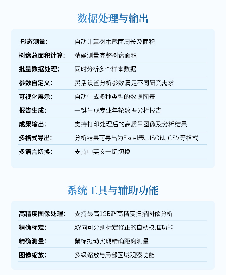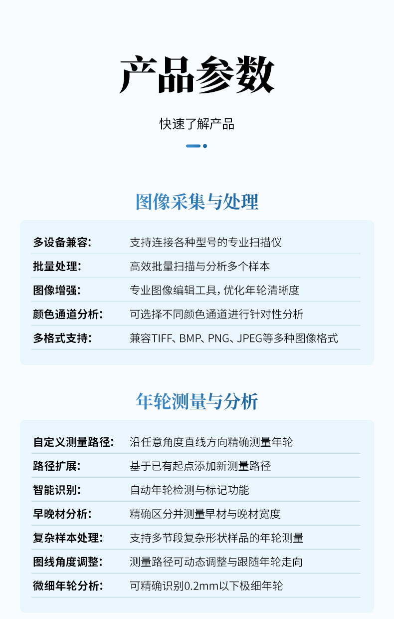 - 復(fù)雜樣本處理:支持多節(jié)段復(fù)雜形狀樣品的年輪測量