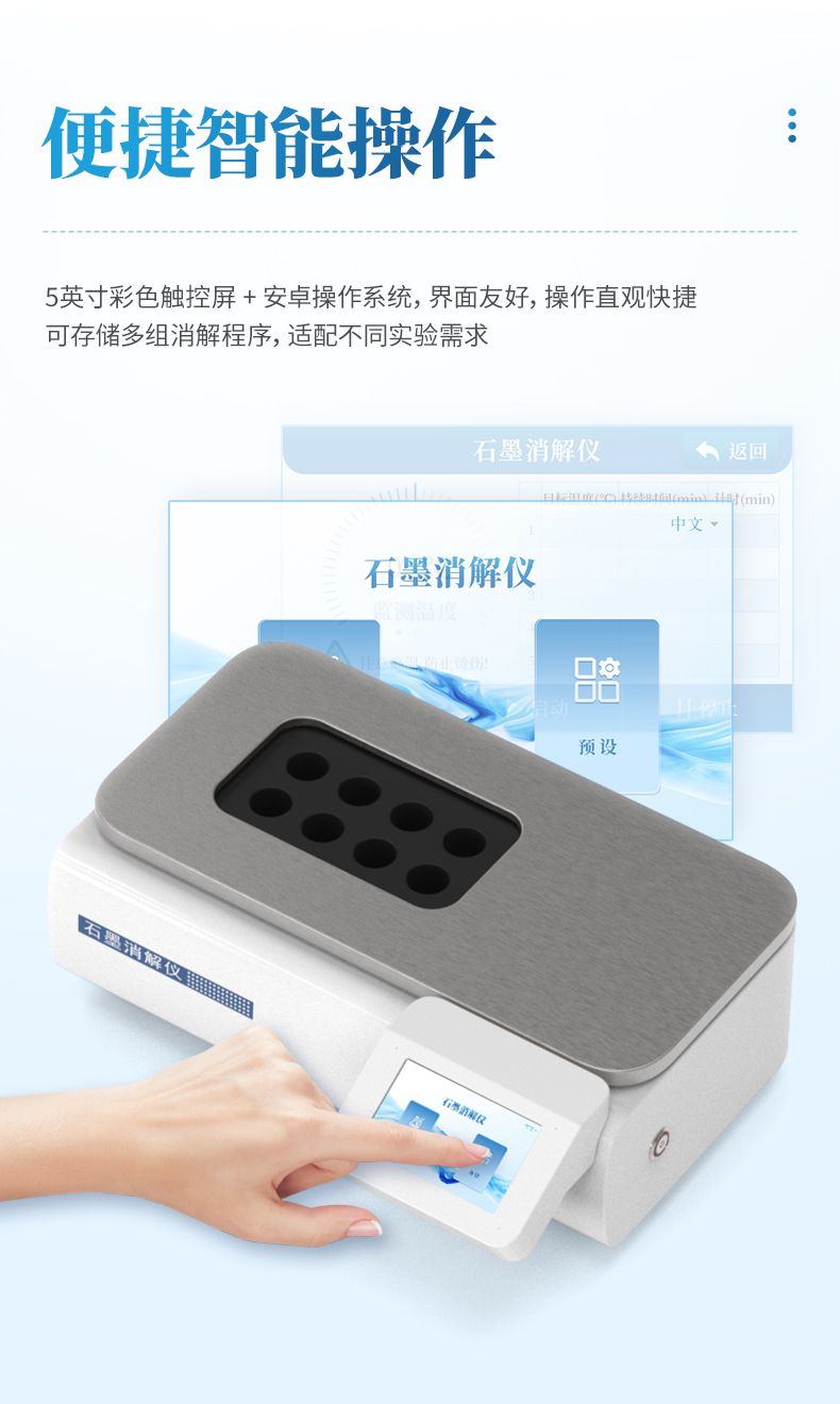 本石墨消解儀是替代傳統(tǒng)電熱板、電熱爐的理想選擇,同時(shí)儀器采用經(jīng)典的30 mm孔徑設(shè)計(jì),完美兼容市場(chǎng)主流的50 mL、100 mL消解管,是實(shí)驗(yàn)室值得信賴(lài)的得力助手。