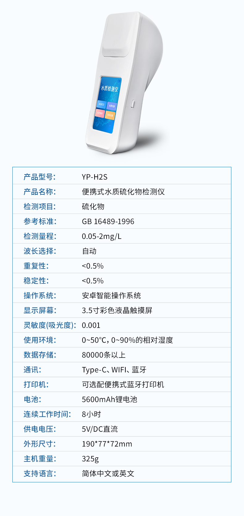 ⑥便攜式體積小,重量輕,方便戶外檢測;