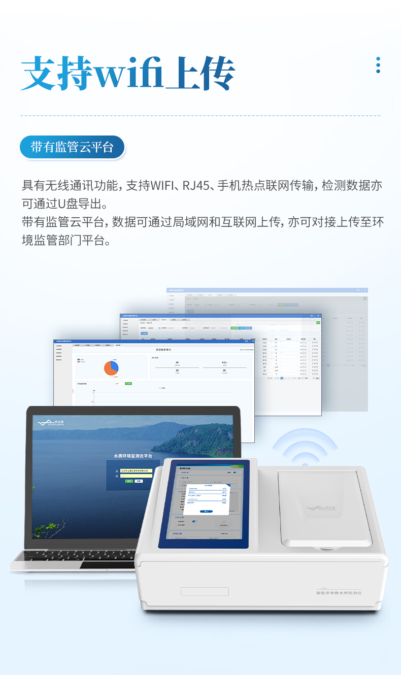 ②配置云監(jiān)控平臺(tái),檢測結(jié)果可直接無線傳至平臺(tái),進(jìn)行水質(zhì)長短期分析,輔助管理。