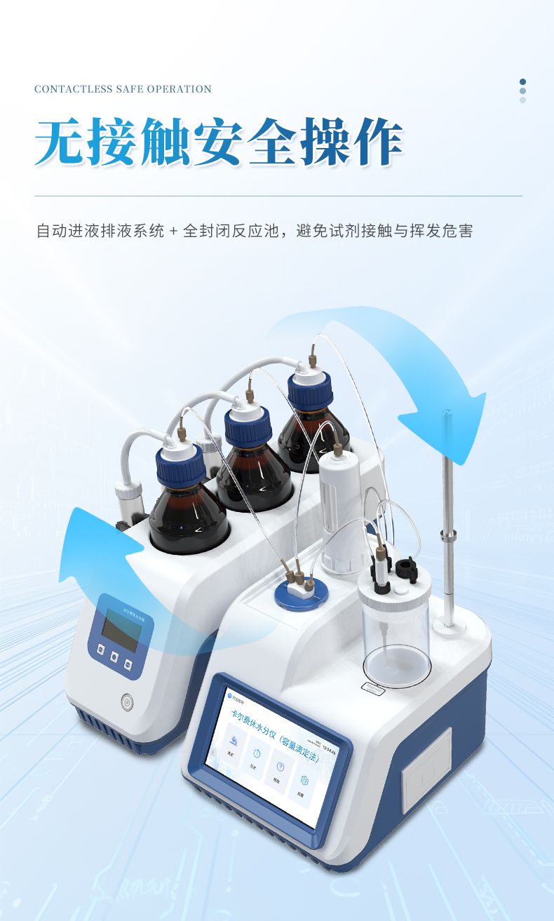 該儀器具有測(cè)定精度高、分析速度快、使用范圍廣、穩(wěn)定可靠、操作簡(jiǎn)單等優(yōu)點(diǎn)。廣泛用于電力、石油、化工、農(nóng)藥、醫(yī)藥等行業(yè)。樣品測(cè)定過(guò)程由儀器自動(dòng)控制,攪拌、測(cè)定60秒左右自動(dòng)完成,直接顯示測(cè)定結(jié)果;全密封滴定池瓶,避免試劑與人接觸,也避免環(huán)境濕度的影響;