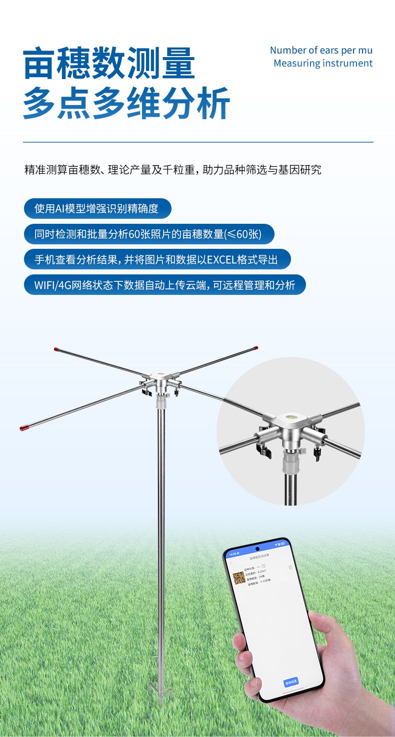 本設(shè)備適用于田間調(diào)查、育種選育、產(chǎn)量預(yù)估等多種應(yīng)用場景,為小麥的品種篩選、小麥產(chǎn)量預(yù)測、產(chǎn)量基因定位和功能解析發(fā)揮著至關(guān)重要的作用??娠@著減少人工計數(shù)帶來的誤差與勞動強度。用戶只需在田間選定樣方區(qū)域,拍攝圖像后即可自動獲得畝穗數(shù)估算結(jié)果,是農(nóng)業(yè)數(shù)字化與智能化發(fā)展的有力工具。