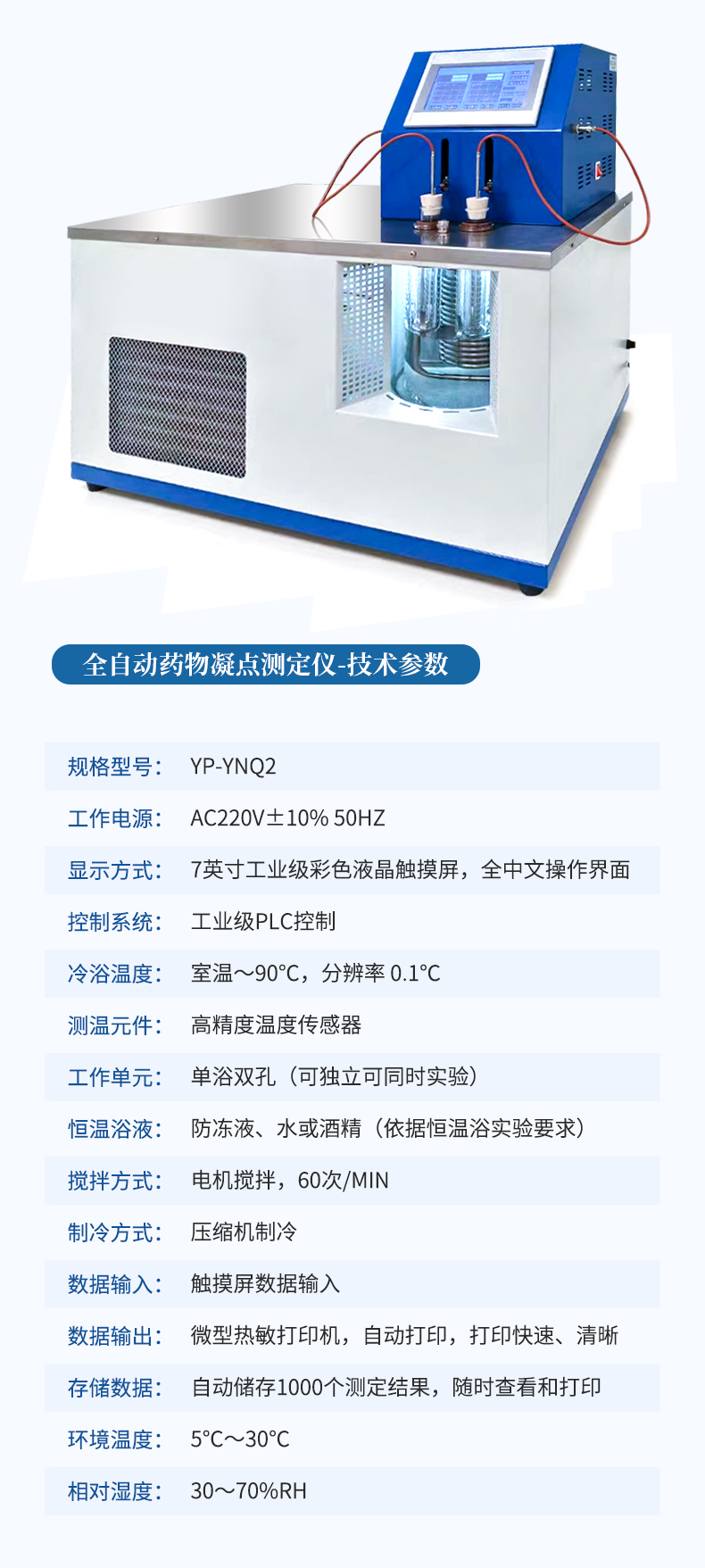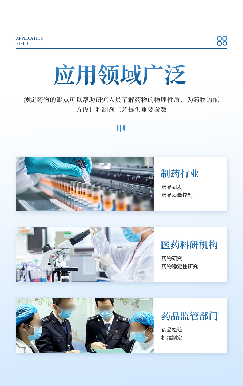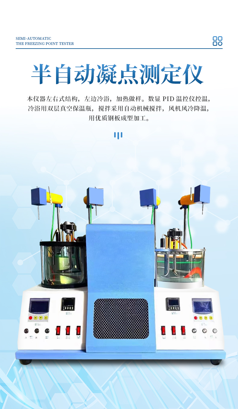 本儀器按《中華人民共和國藥典》2020年版四部 通則 0613凝點(diǎn)測定法設(shè)計制造,測定藥物由液體凝結(jié)為固體時候,在短時間內(nèi)停留不變的最高溫度。某些藥品具有一定的凝點(diǎn)、純度變更,凝點(diǎn)亦隨之改變。測定凝點(diǎn)可以區(qū)別或檢查藥品的純雜程度。