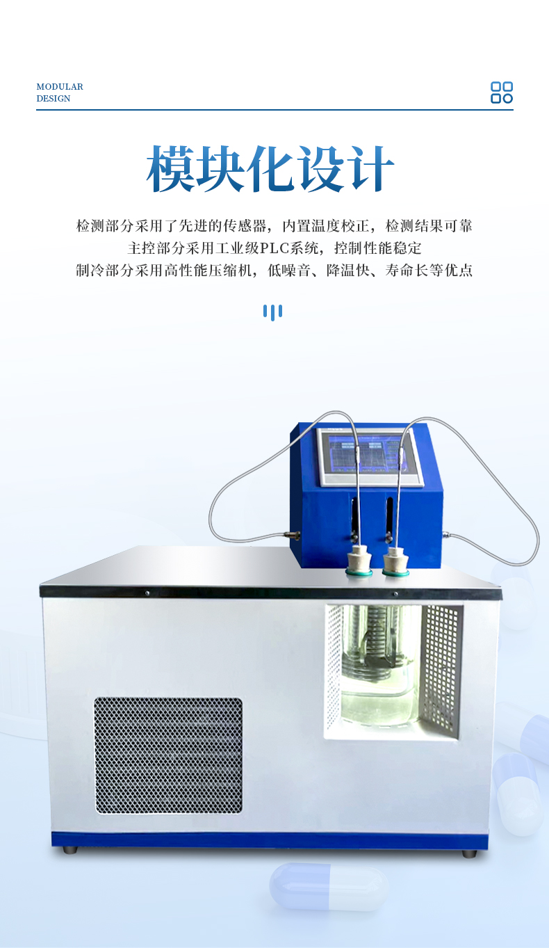 3、本儀器的冷浴是采用雙層真空保溫瓶,能很好的透明觀察試樣,保溫性能良好。