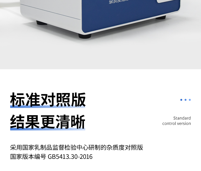 標準對照版采用國家乳制品監(jiān)督檢驗中心研制的雜質(zhì)度對照版,國家版本編號 GB5413.30-2016。