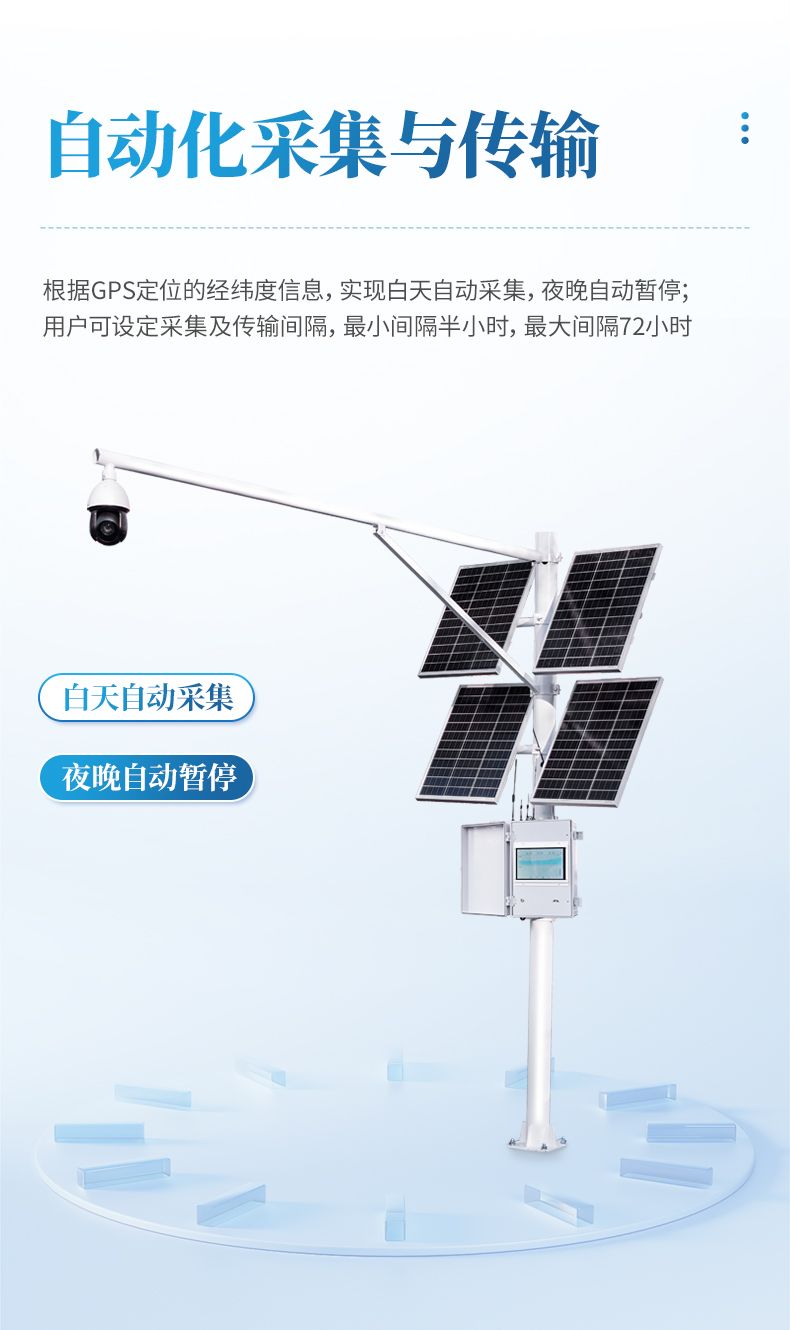 5. 自動化采集與傳輸:根據(jù)GPS定位的經(jīng)緯度信息,實(shí)現(xiàn)白天自動采集,夜晚自動暫停;用戶可設(shè)定采集及傳輸間隔,最小間隔半小時,最大間隔72小時