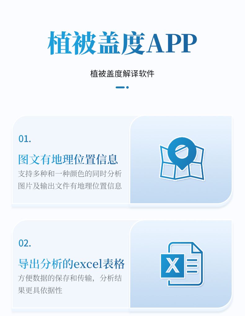 1. 軟件提供豐富的圖像分割模式,軟件內(nèi)置植被、土壤特征模型,支持廣泛地域植被蓋度和郁閉度測量計算。