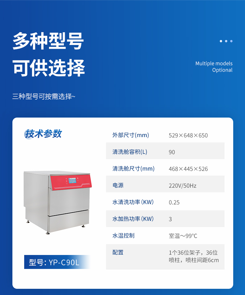 4.1 清洗艙容積≥200L; 外形尺寸:607×730×1050;電源(V/HZ):220V/50Hz;